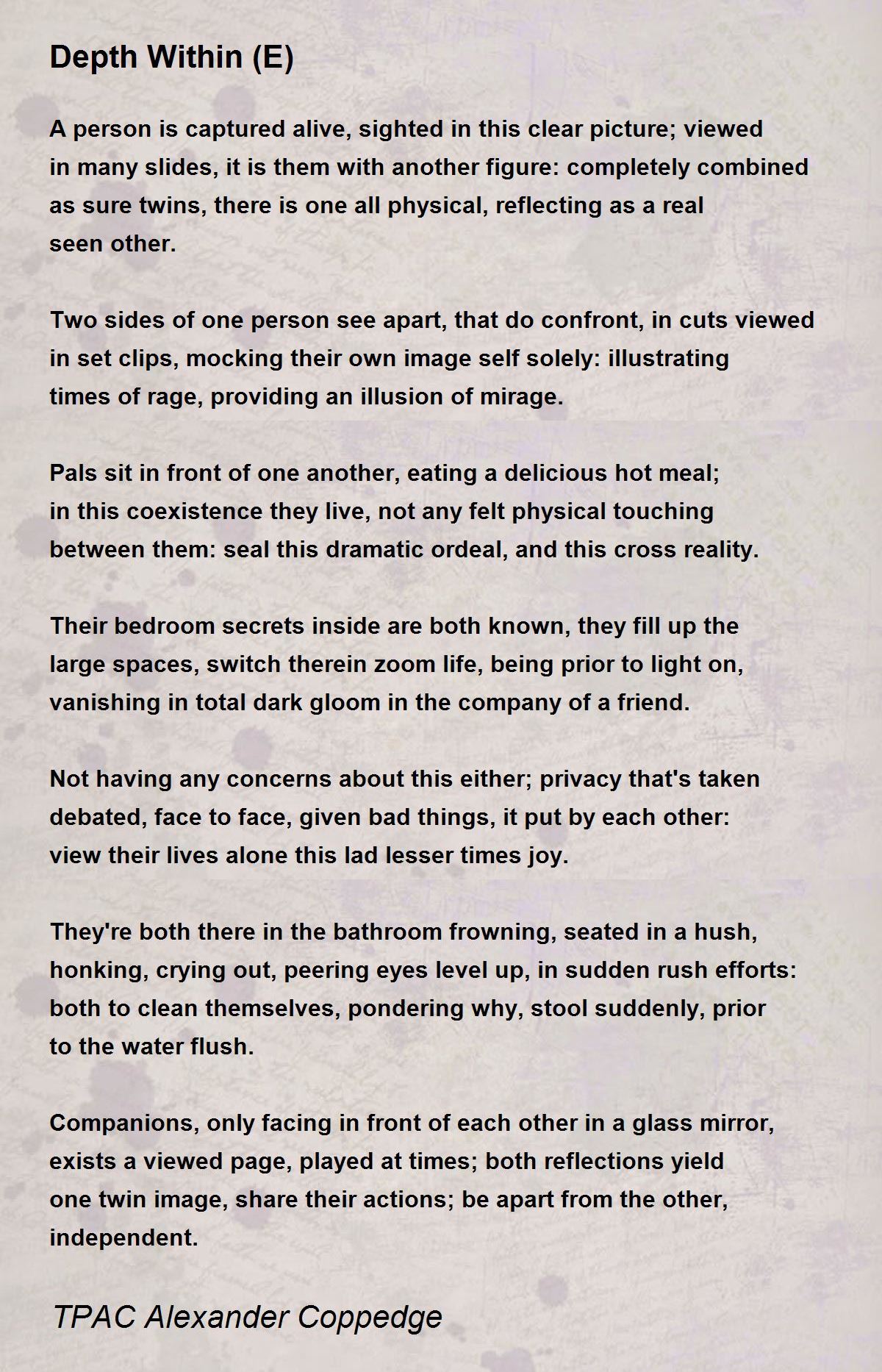 A person is captured alive, sighted in this clear picture; viewed in many slides, it is them with another figure: completely combined as sure twins, there is one all physical, reflecting as a real seen other.