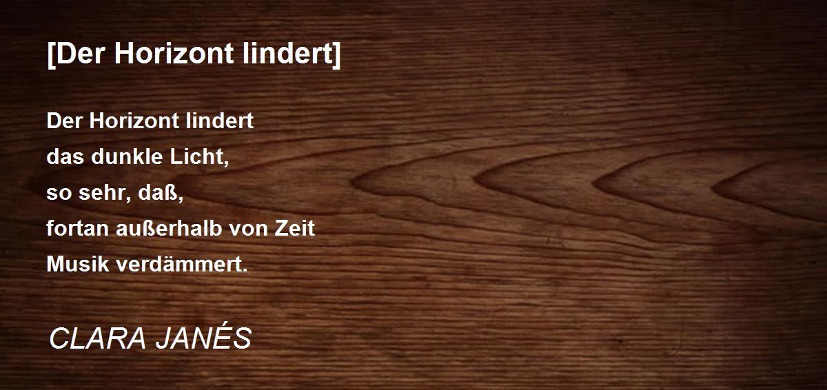 Der Horizont lindert das dunkle Licht, so sehr, daß, fortan außerhalb von Zeit Musik verdämmert.