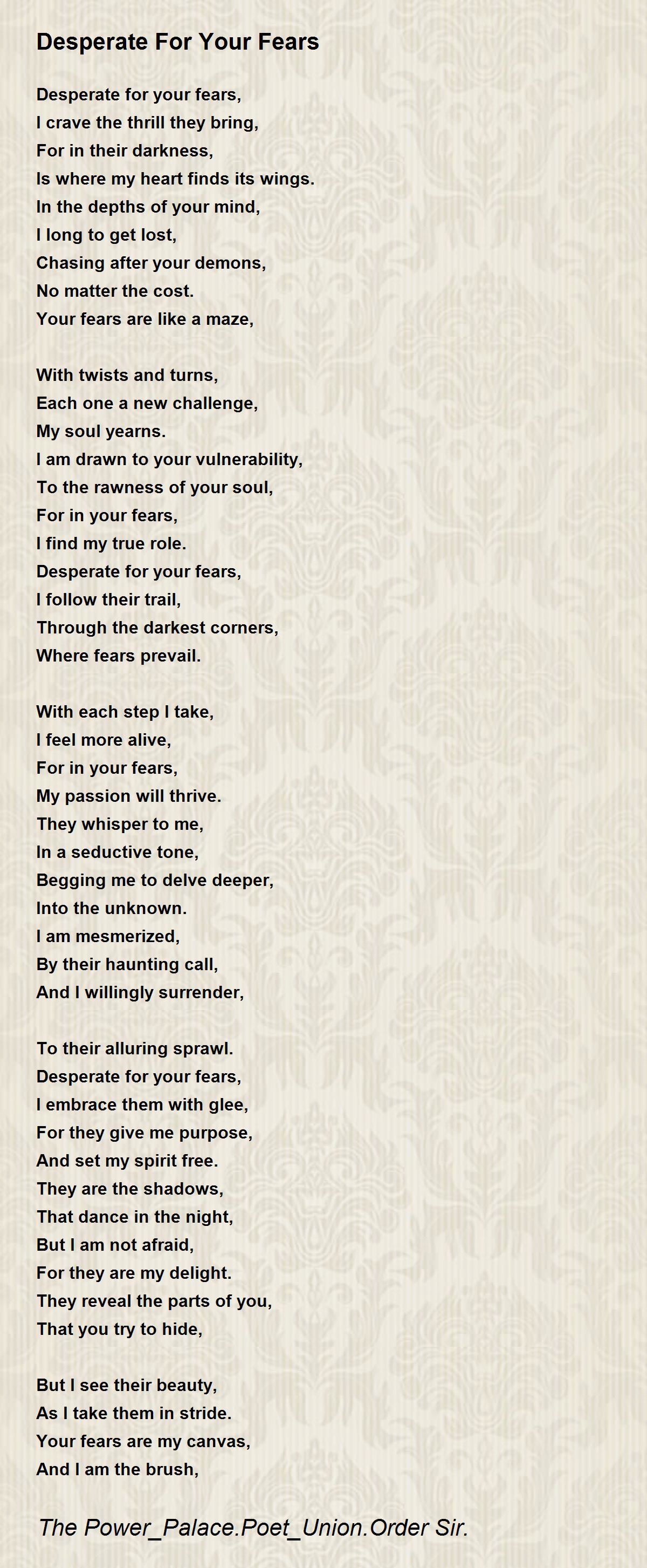 Desperate for your fears,