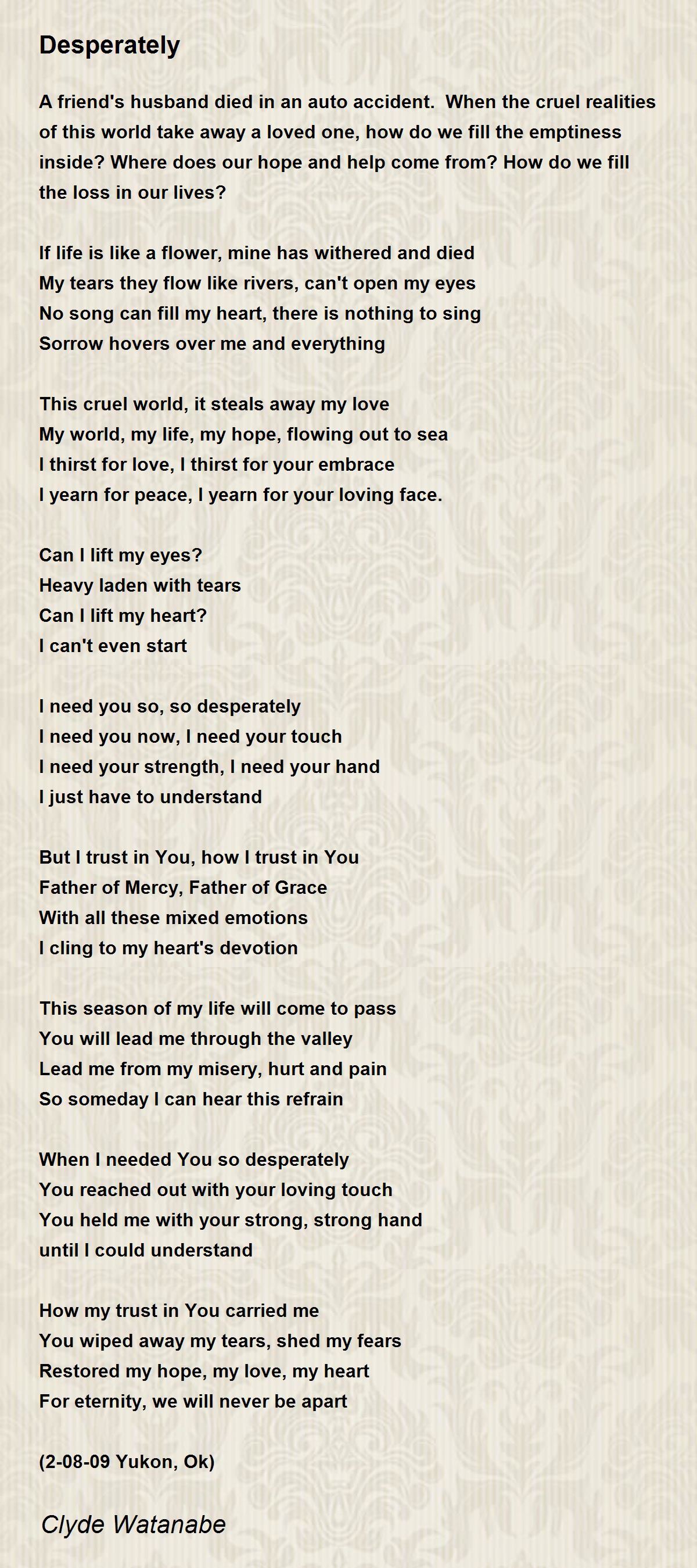 I need you so, so desperately