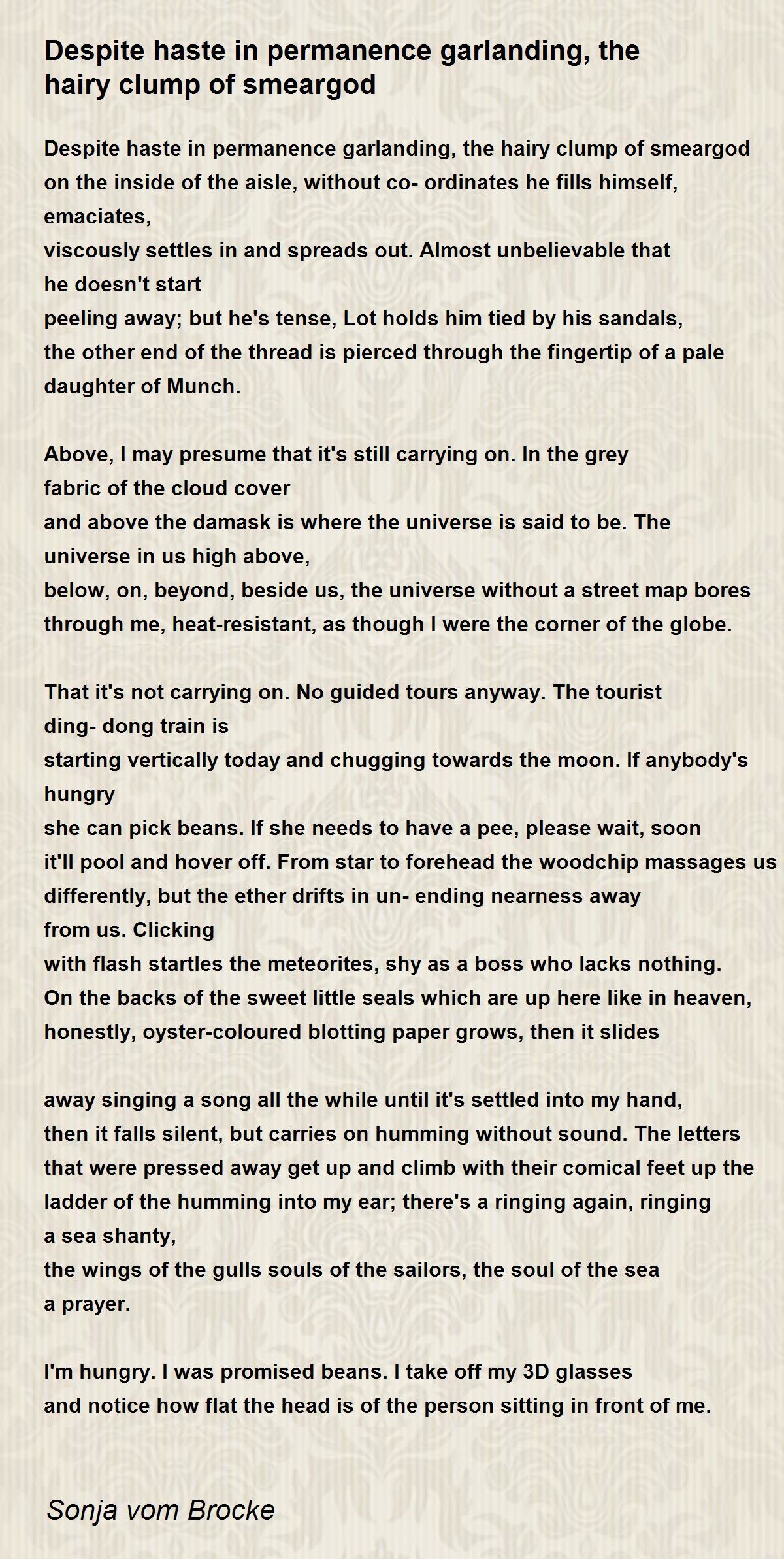 Despite haste in permanence garlanding, the hairy clump of smeargod