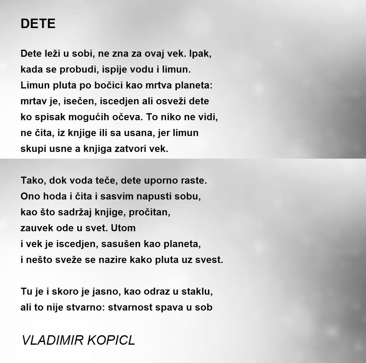 Dete leži u sobi, ne zna za ovaj vek. Ipak,