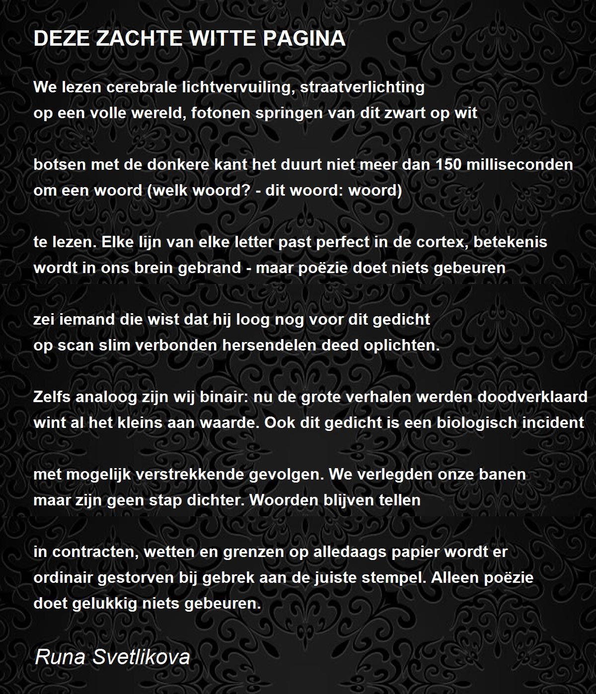 ordinair gestorven bij gebrek aan de juiste stempel. Alleen poëzie