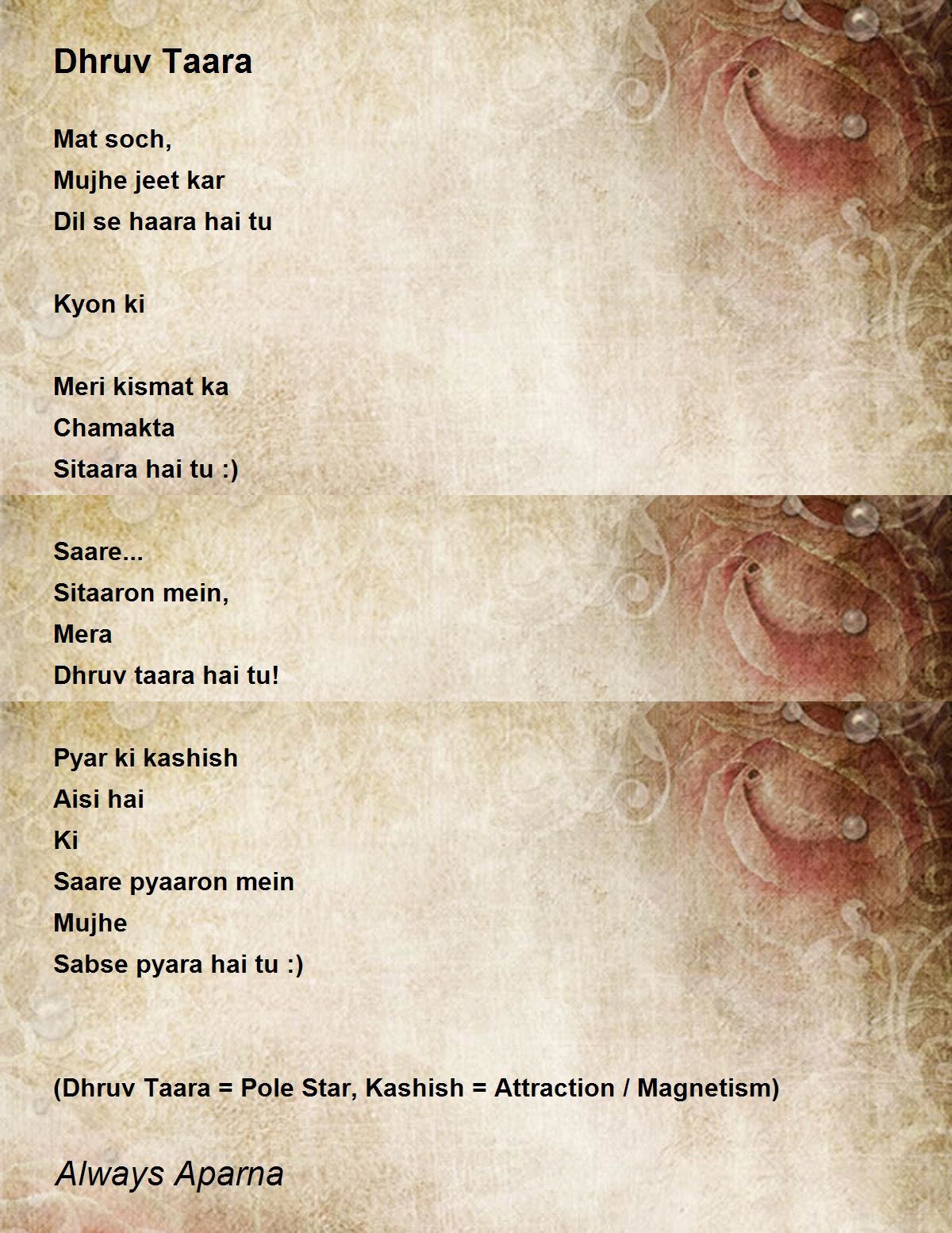 (Dhruv Taara = Pole Star, Kashish = Attraction / Magnetism)