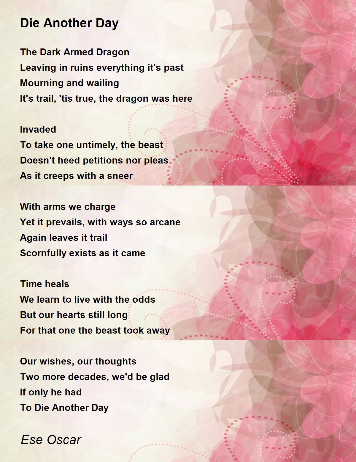 " Our wishes, our thoughts /Two more decades, we'd be glad /If only he had /To Die Another Day" very poetic. Wonderful poem. Enjoyed