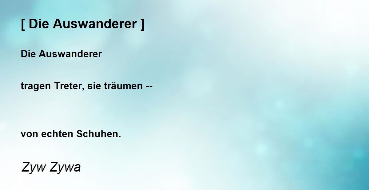 Die Auswanderer tragen Treter, sie träumen -- von echten Schuhen.
