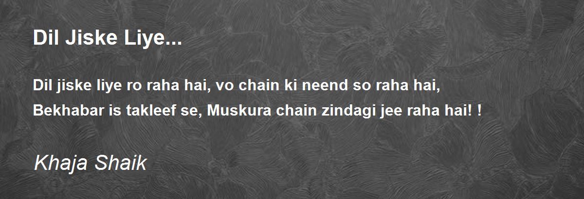 Dil jiske liye ro raha hai, vo chain ki neend so raha hai, Bekhabar is takleef se, Muskura chain zindagi jee raha hai! !