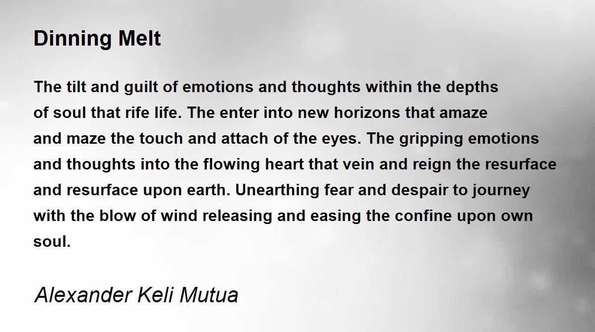 The tilt and guilt of emotions and thoughts within the depths of soul that rife life. The enter into new horizons that amaze and maze the touch and attach of the eyes. The gripping emotions and thoughts into the flowing heart that vein and reign the resurface and resurface upon earth. Unearthing fear and despair to journey with the blow of wind releasing and easing the confine upon own soul.
