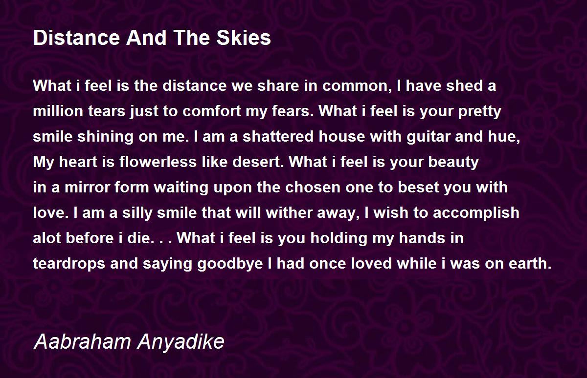 What i feel is the distance we share in common, I have shed a million tears just to comfort my fears. What i feel is your pretty smile shining on me. I am a shattered house with guitar and hue, My heart is flowerless like desert. What i feel is your beauty in a mirror form waiting upon the chosen one to beset you with love. I am a silly smile that will wither away, I wish to accomplish alot before i die... What i feel is you holding my hands in teardrops and saying goodbye I had once loved while i was on earth.