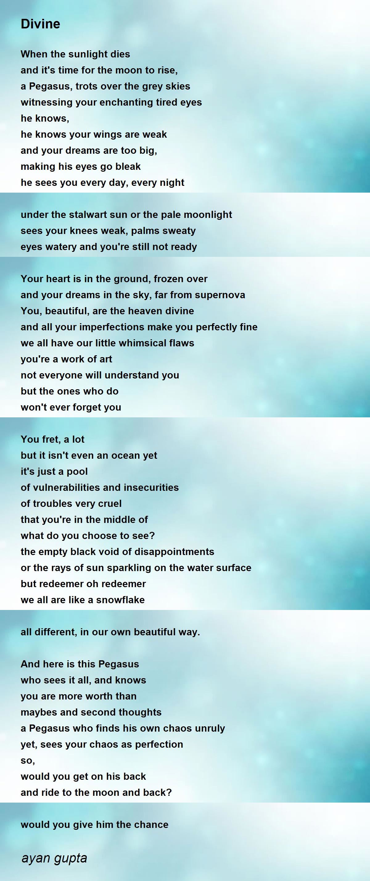 You, beautiful, are the heaven divine
