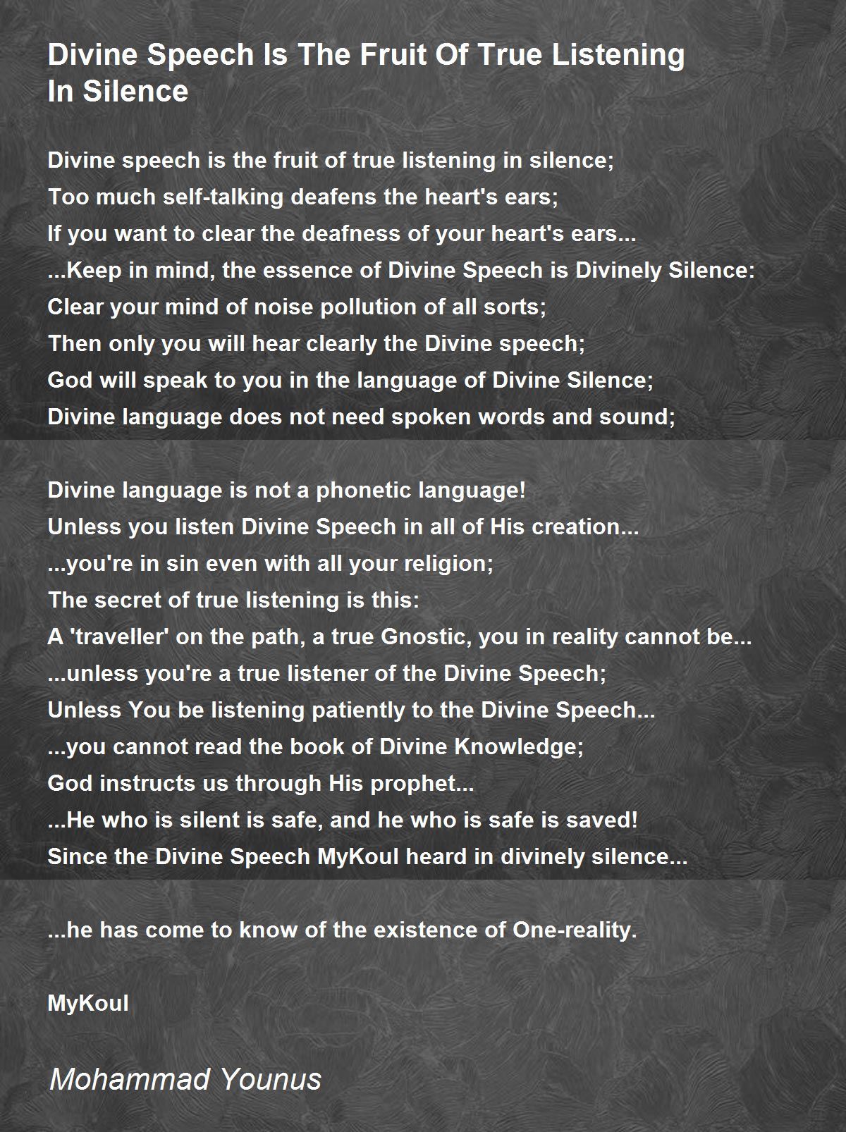 ...Keep in mind, the essence of Divine Speech is Divinely Silence: