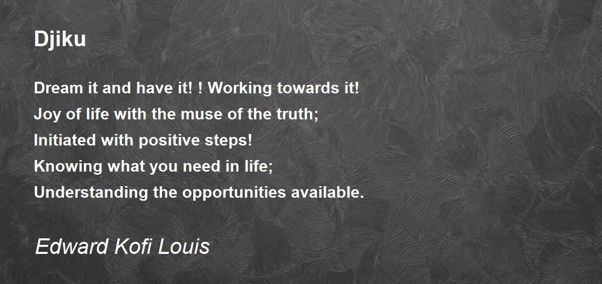 Dreams of love and life! ! Working toward them; Without giving up. Thanks for your comment on my poem. Stay blessed always.