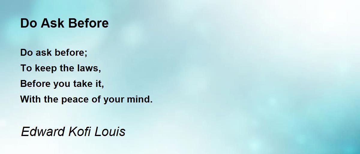 Do ask before; To keep the laws, Before you take it, With the peace of your mind.