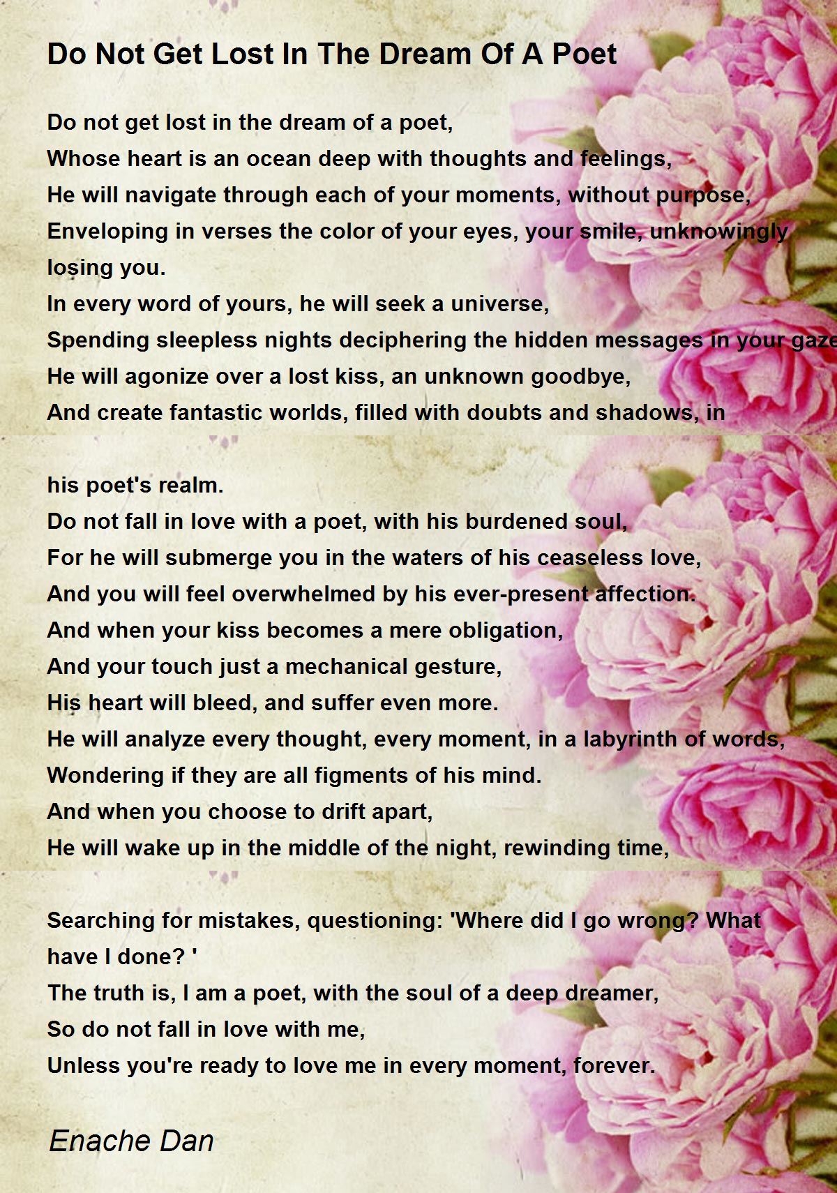 The truth is, I am a poet, with the soul of a deep dreamer,