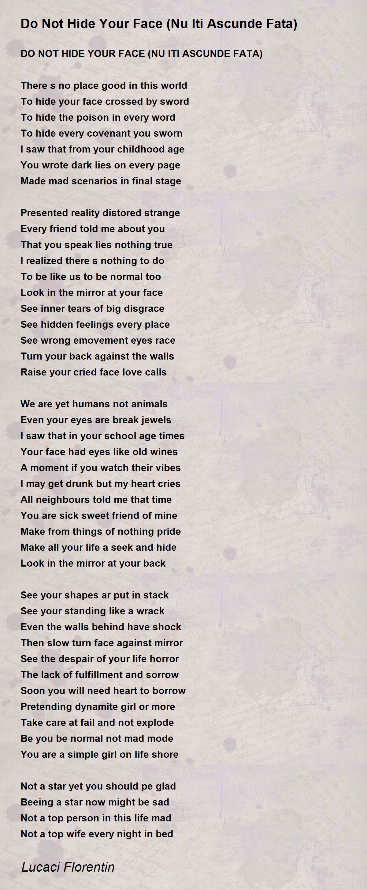 DO NOT HIDE YOUR FACE (NU ITI ASCUNDE FATA)