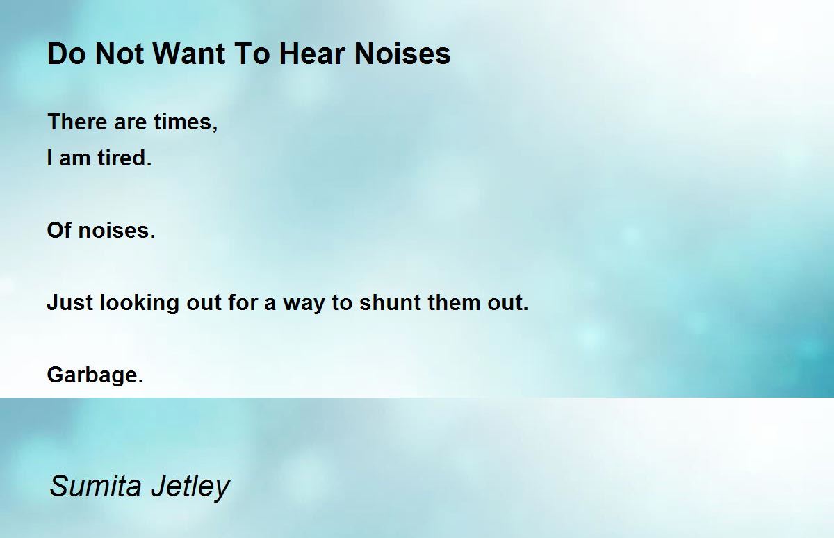 There are times, I am tired. Of noises. Just looking out for a way to shunt them out. Garbage.