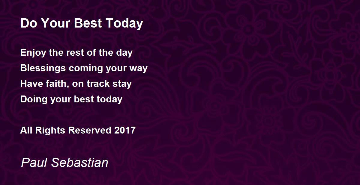 Enjoy the rest of the day Blessings coming your way Have faith, on track stay Doing your best today All Rights Reserved 2017