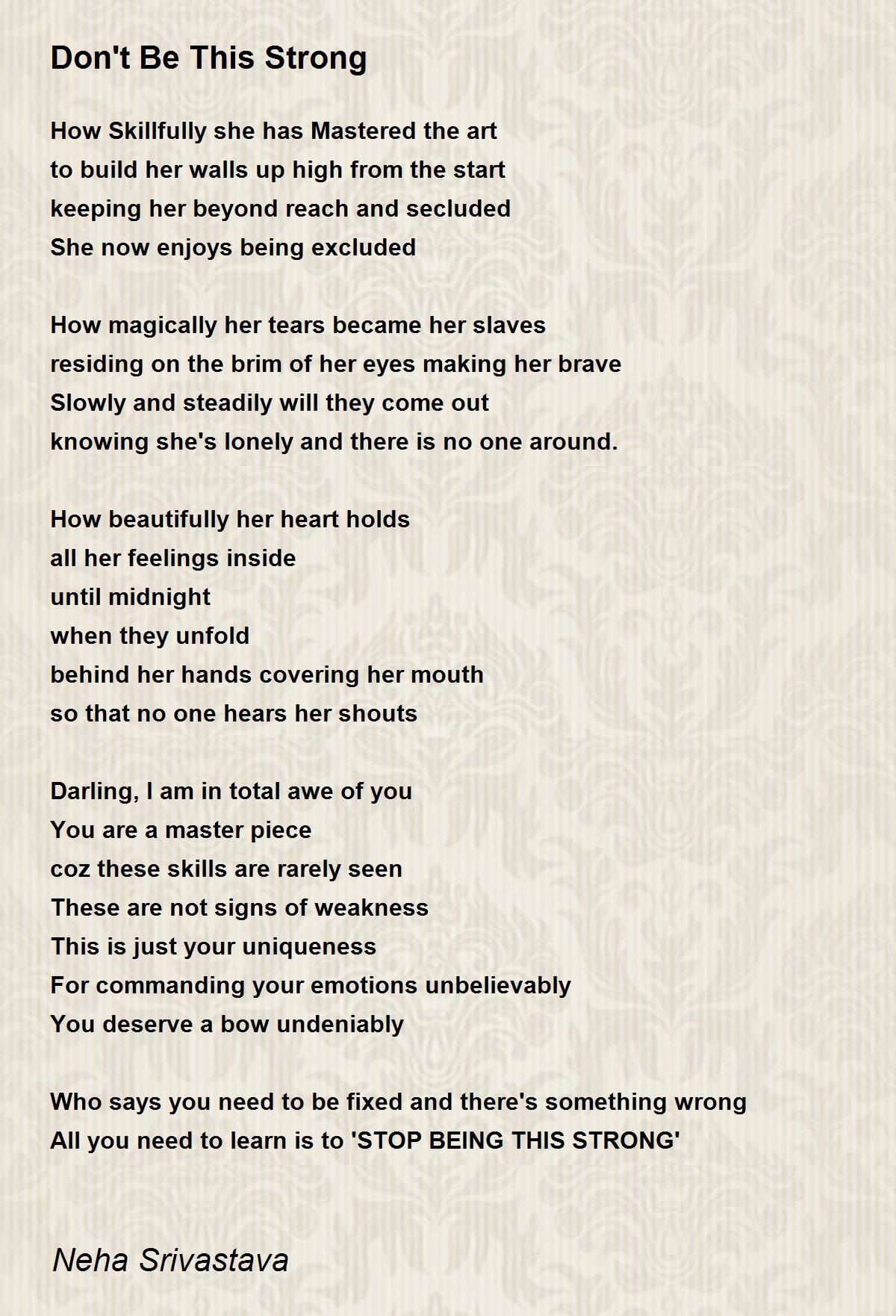 All you need to learn is to 'STOP BEING THIS STRONG'