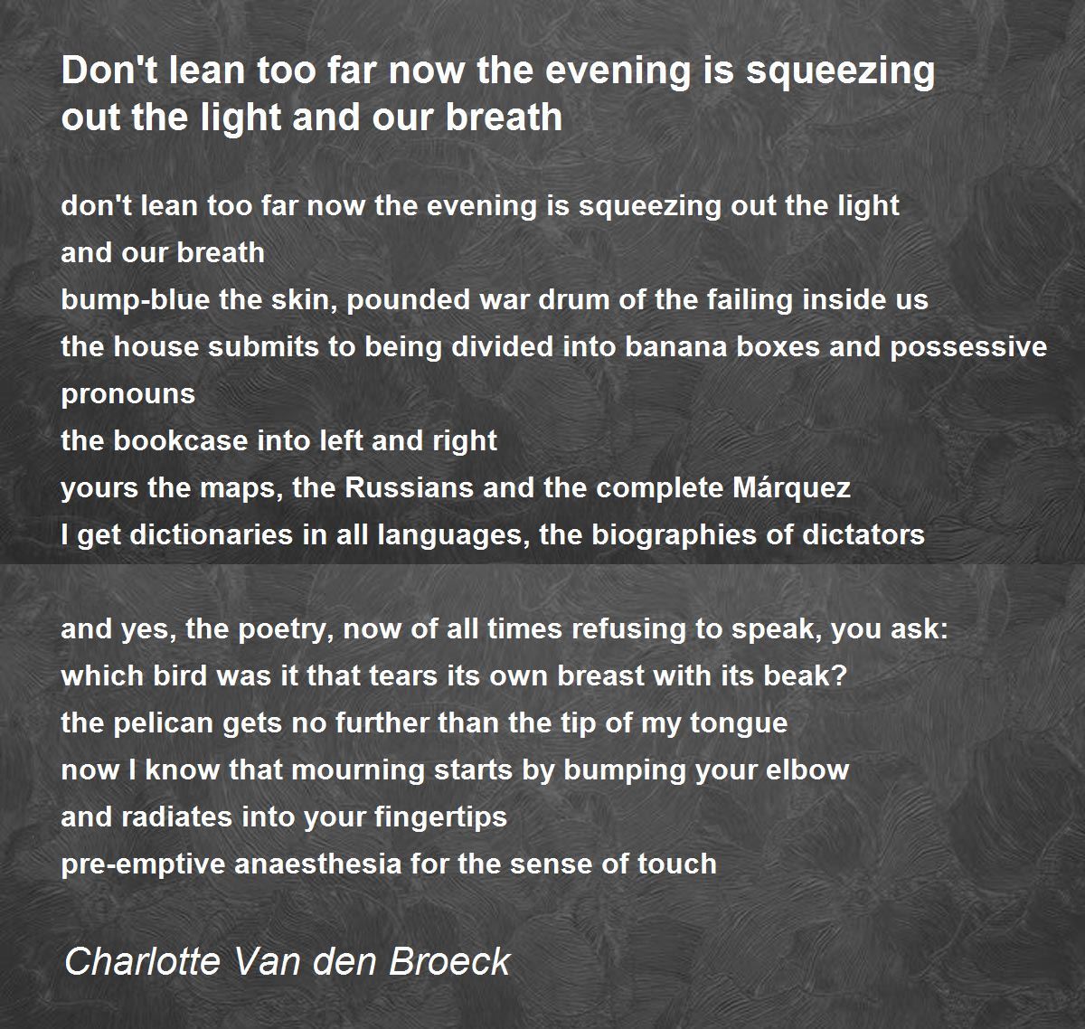don't lean too far now the evening is squeezing out the light and our breath