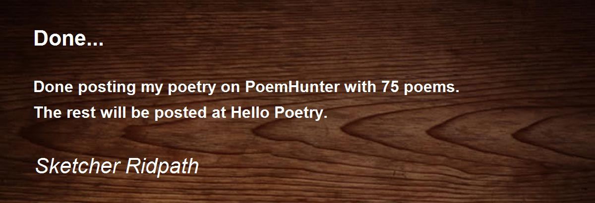 Done posting my poetry on PoemHunter with 75 poems. The rest will be posted at Hello Poetry.