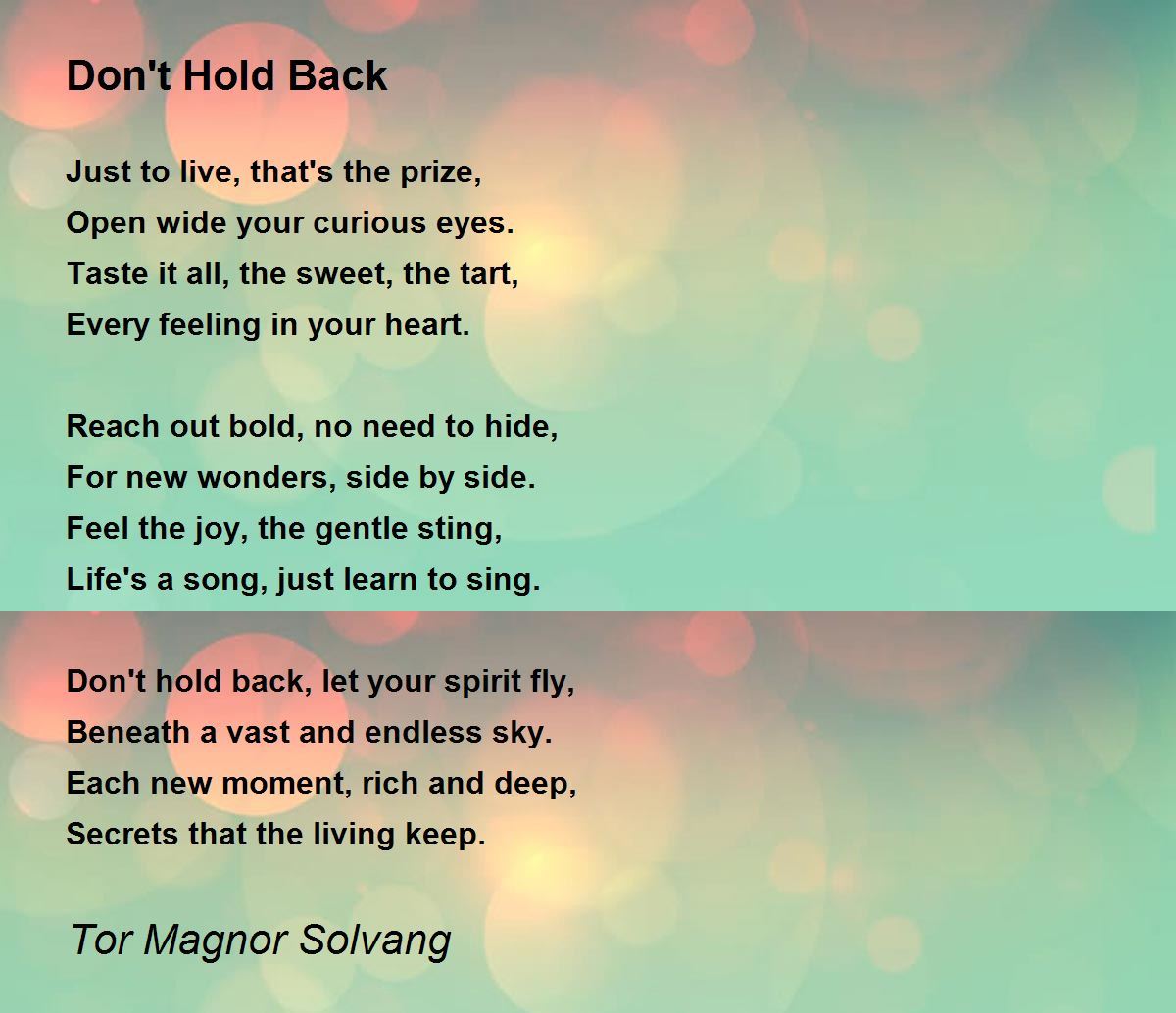 Don't hold back, let your spirit fly,