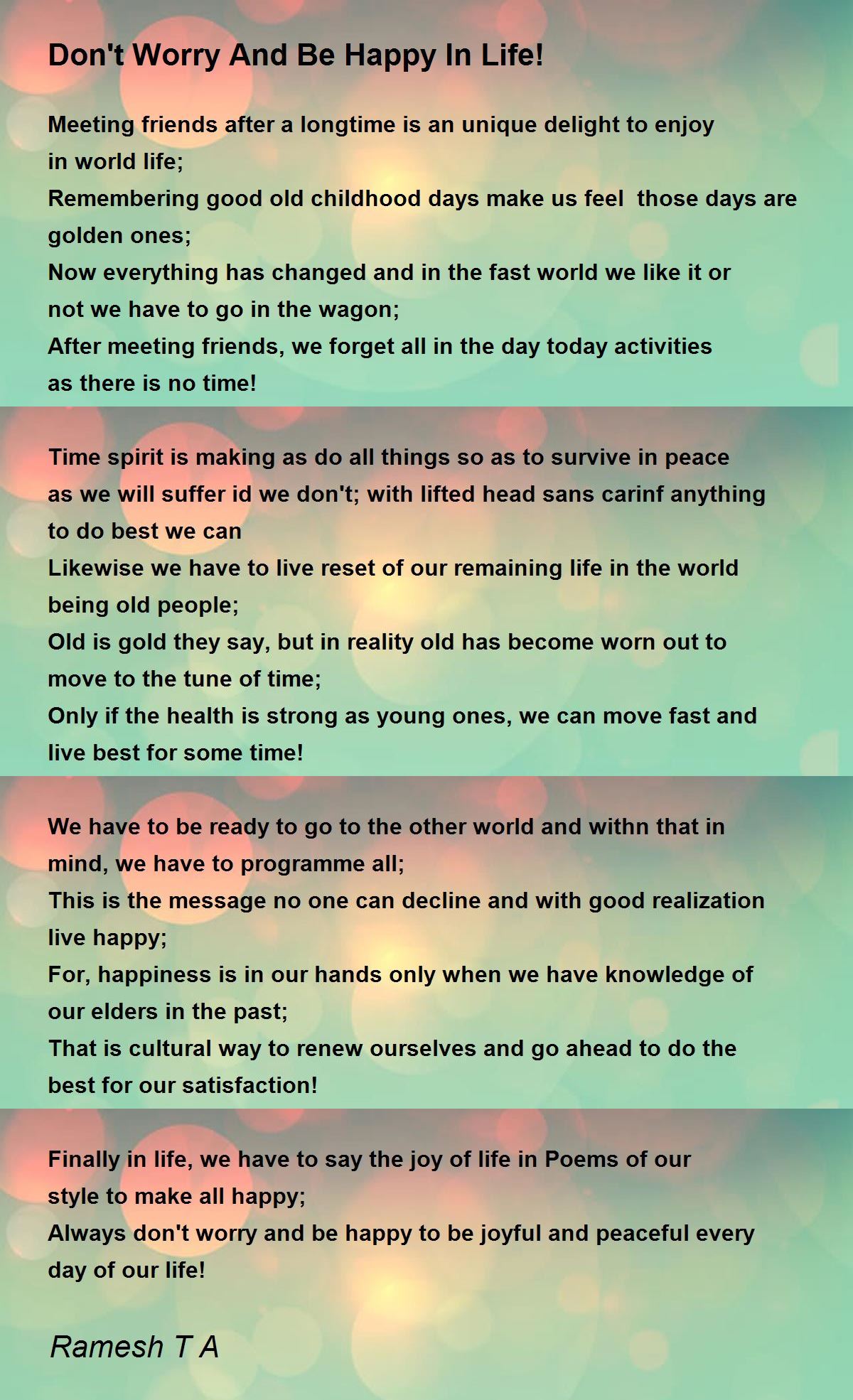 Finally in life, we have to say the joy of life in Poems of our style to make all happy; Always don't worry and be happy to be joyful and peaceful every day of our life!