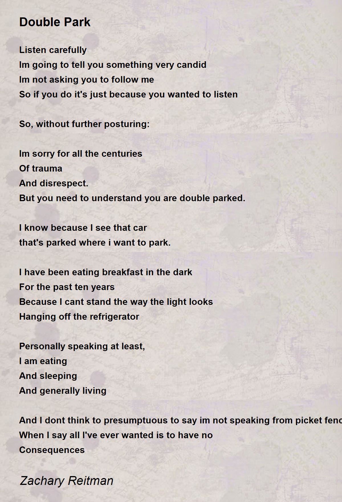 But you need to understand you are double parked.