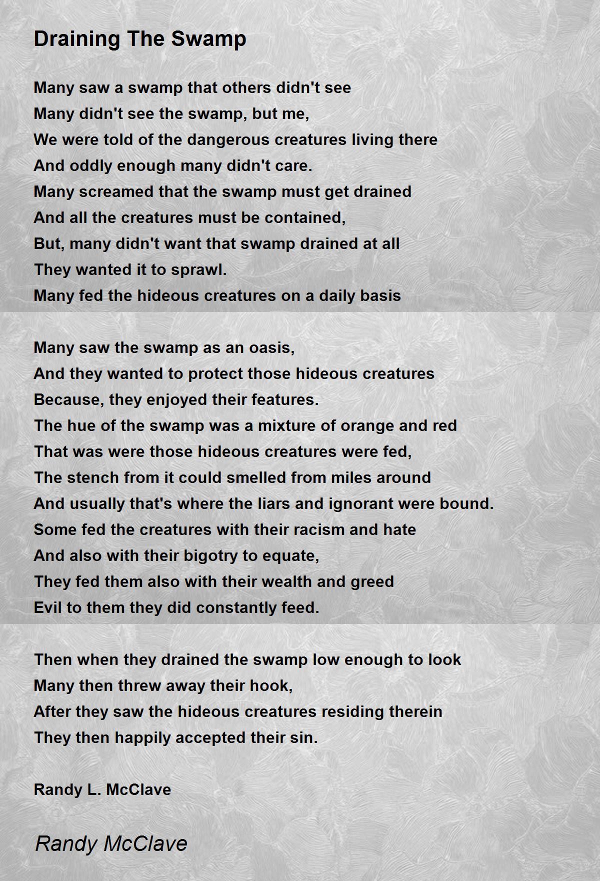 Many didn't see the swamp, but me,