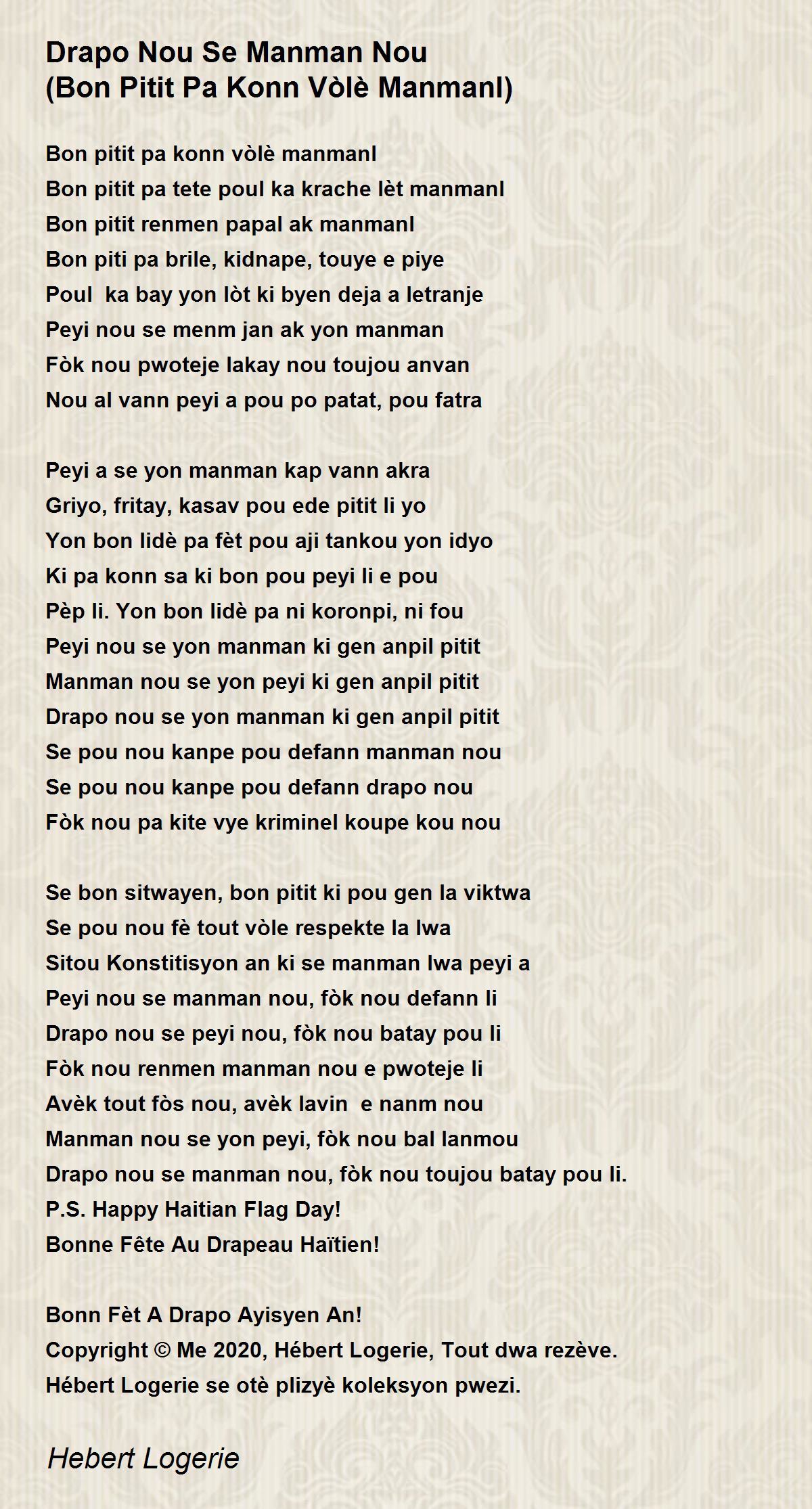 Manman nou se yon peyi, fòk nou bal lanmou