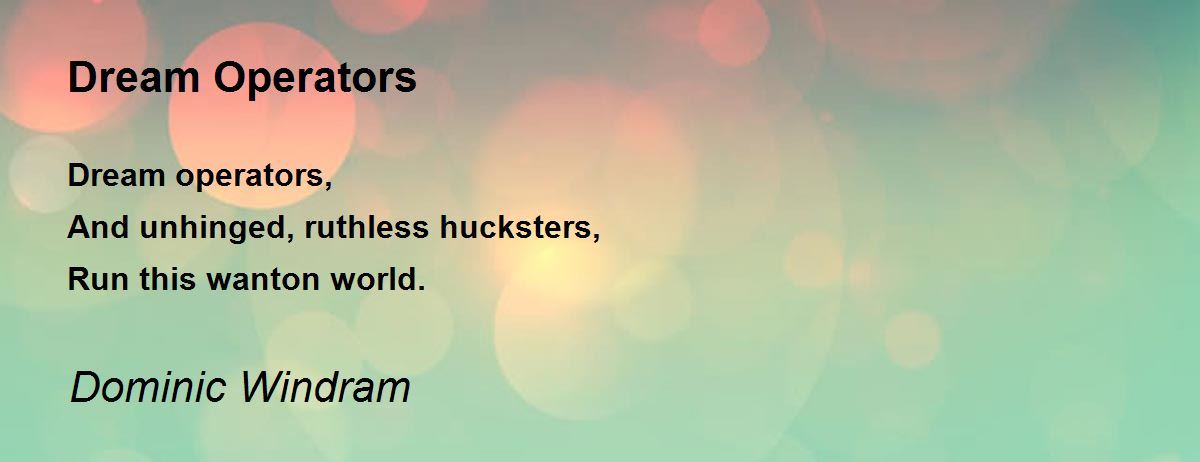 Dream operators, And unhinged, ruthless hucksters, Run this wanton world.