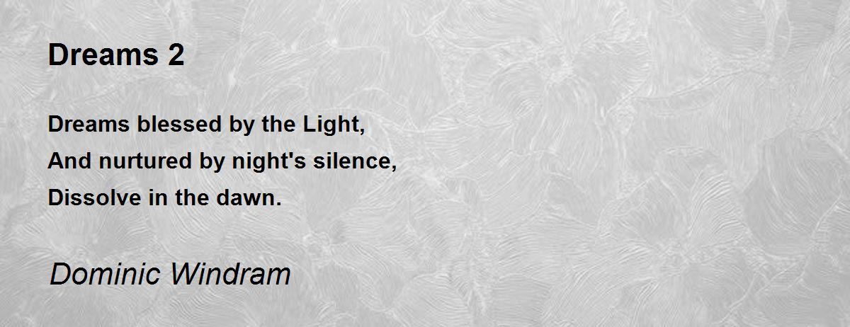 Dreams blessed by the Light, And nurtured by night's silence, Dissolve in the dawn.