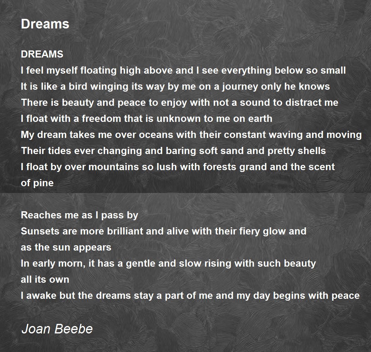I awake but the dreams stay a part of me and my day begins with peace