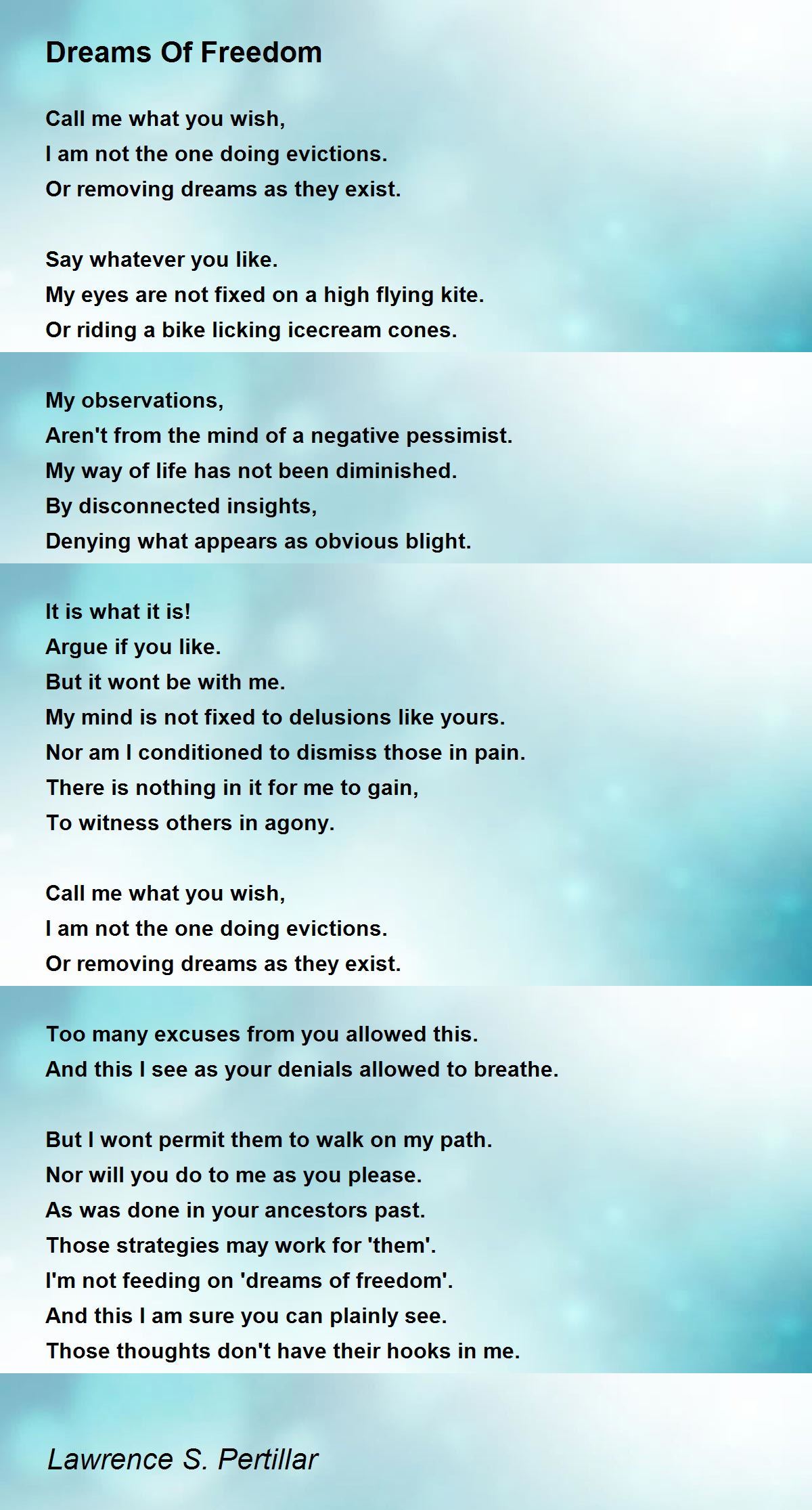 I'm not feeding on 'dreams of freedom'.