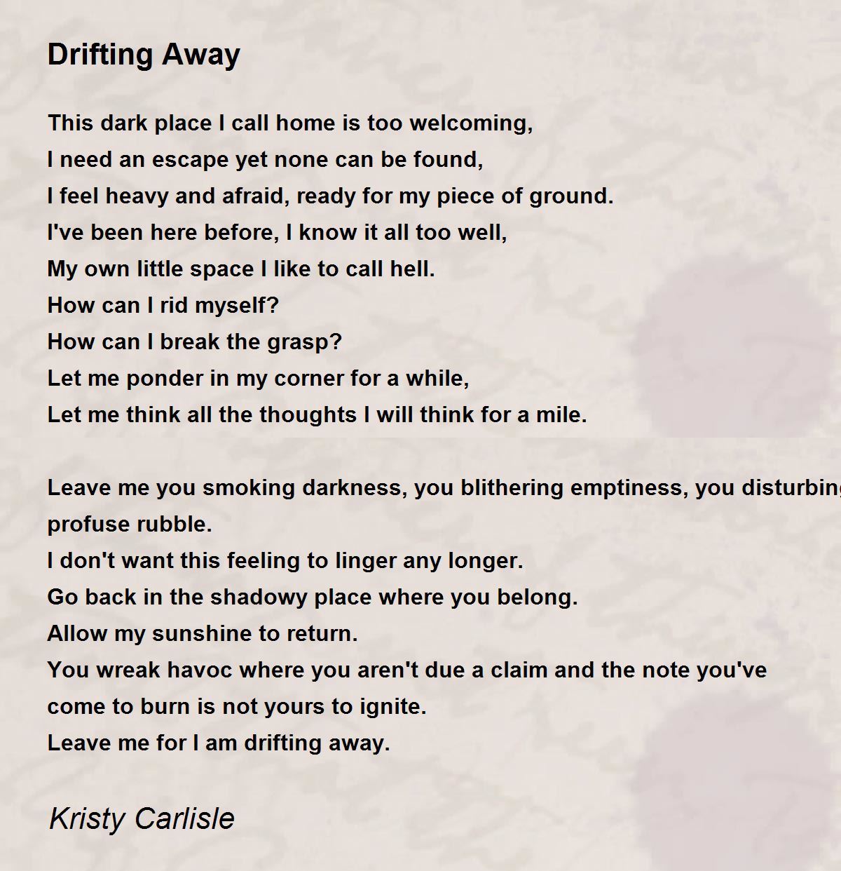 Depression - loss of sunshine in a life at its lowest ebb, is aptly portrayed in the poem. An insightful piece of poetry well articulated and nicely penned with conviction. Thanks for sharing Kristy.