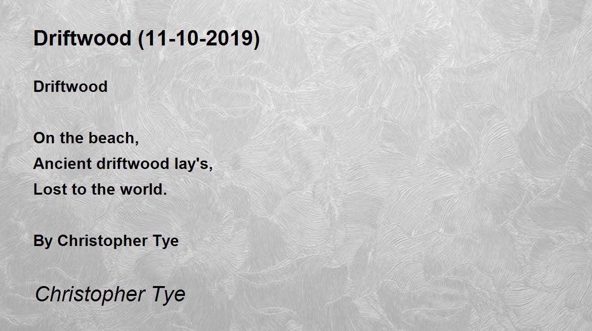 Driftwood On the beach, Ancient driftwood lay's, Lost to the world. By Christopher Tye
