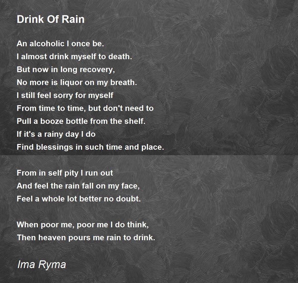 Then heaven pours me rain to drink.