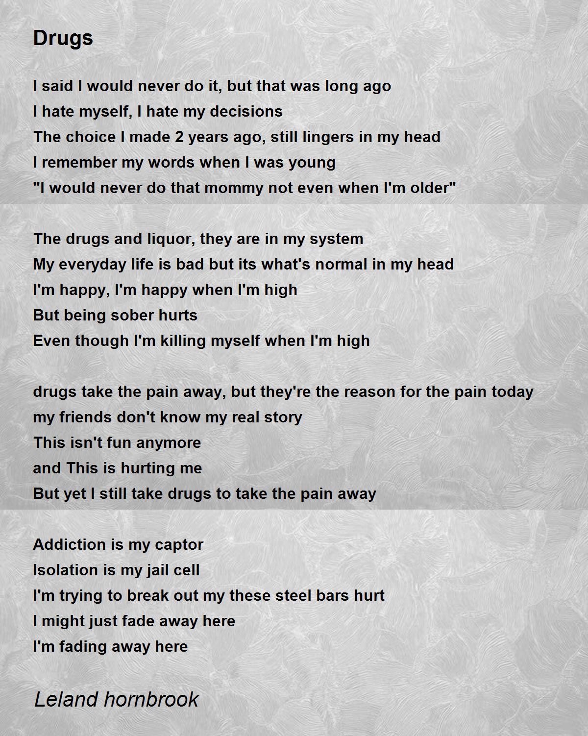 An insightful piece of poetry, well articulated and nicely penned with clarity of thought and mind. An ugly story of drug addiction is aptly captured in the poem. Thanks for sharing, Leland.