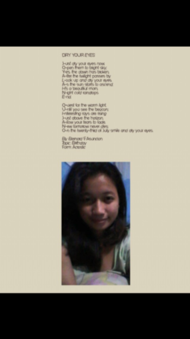 J-ust dry your eyes now,