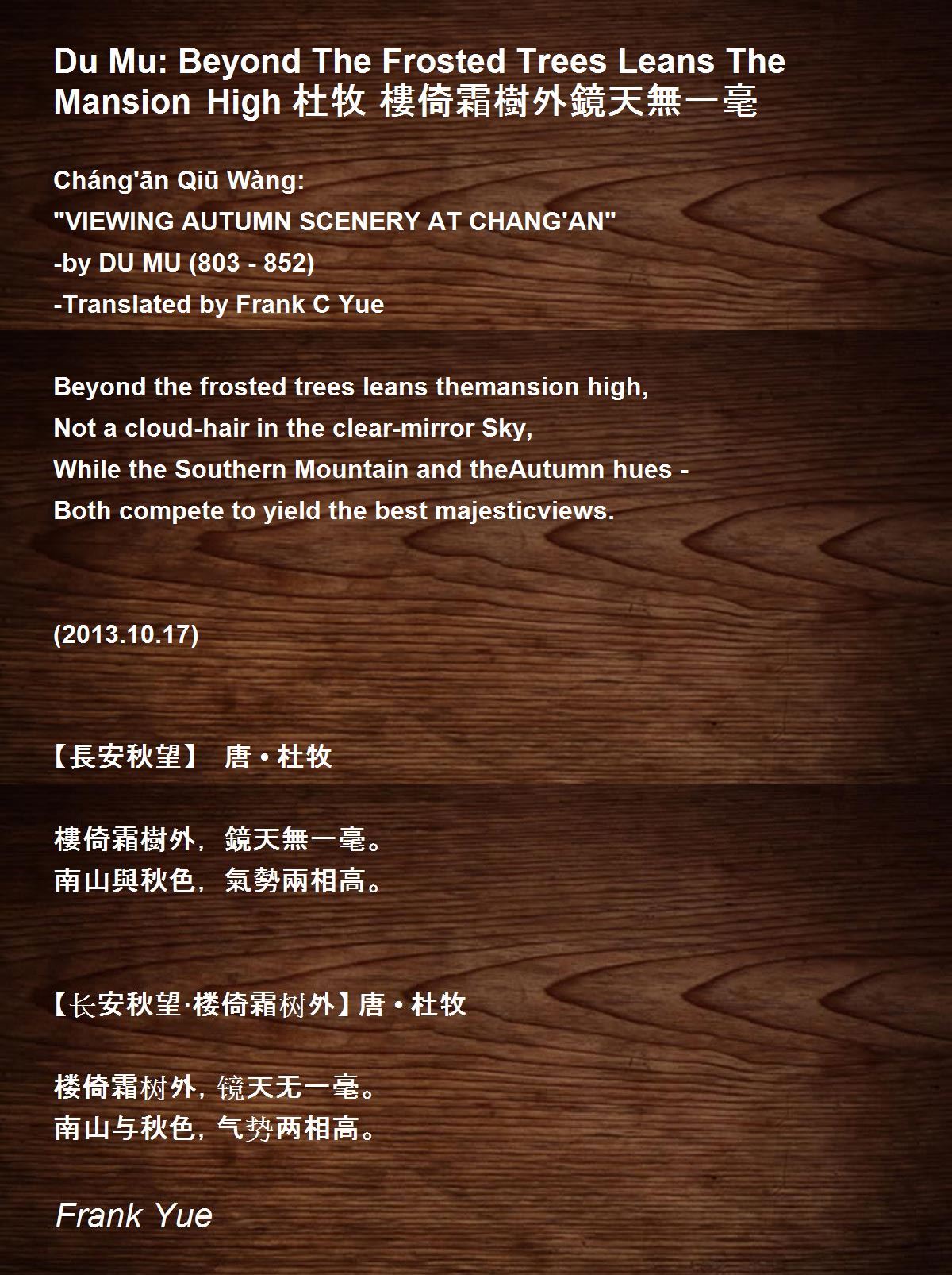 【长安秋望·楼倚霜树外】 唐 • 杜牧