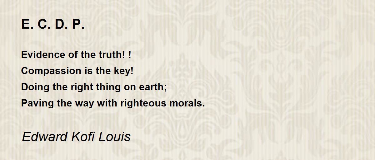 Evidence of the truth! ! Compassion is the key! Doing the right thing on earth; Paving the way with righteous morals.