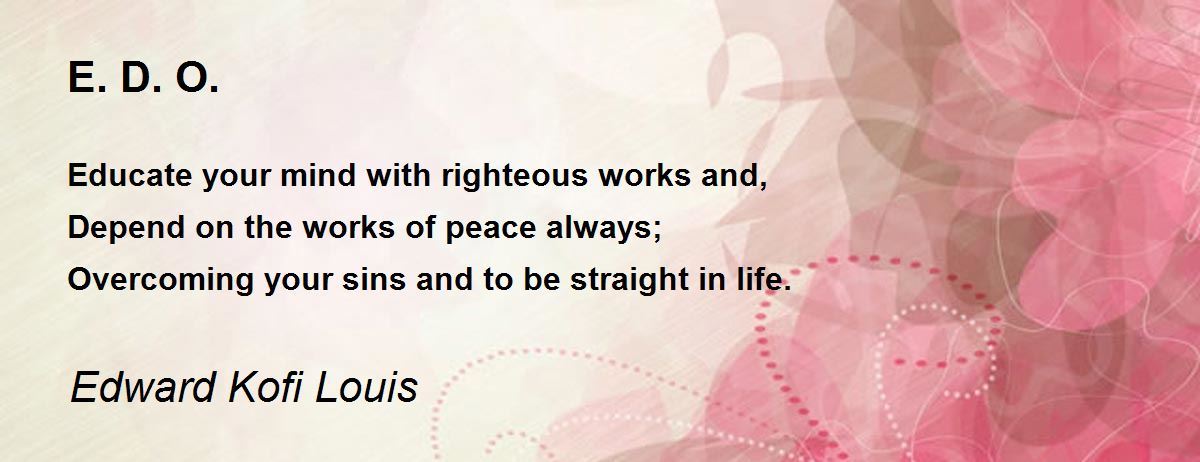 Educate your mind with righteous works and, Depend on the works of peace always; Overcoming your sins and to be straight in life.