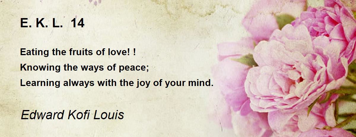 Eating the fruits of love! ! Knowing the ways of peace; Learning always with the joy of your mind.