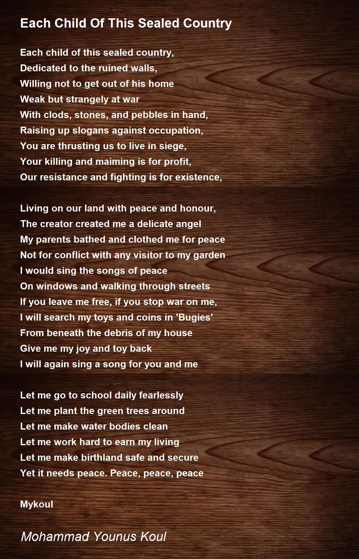 Each child of this sealed country,