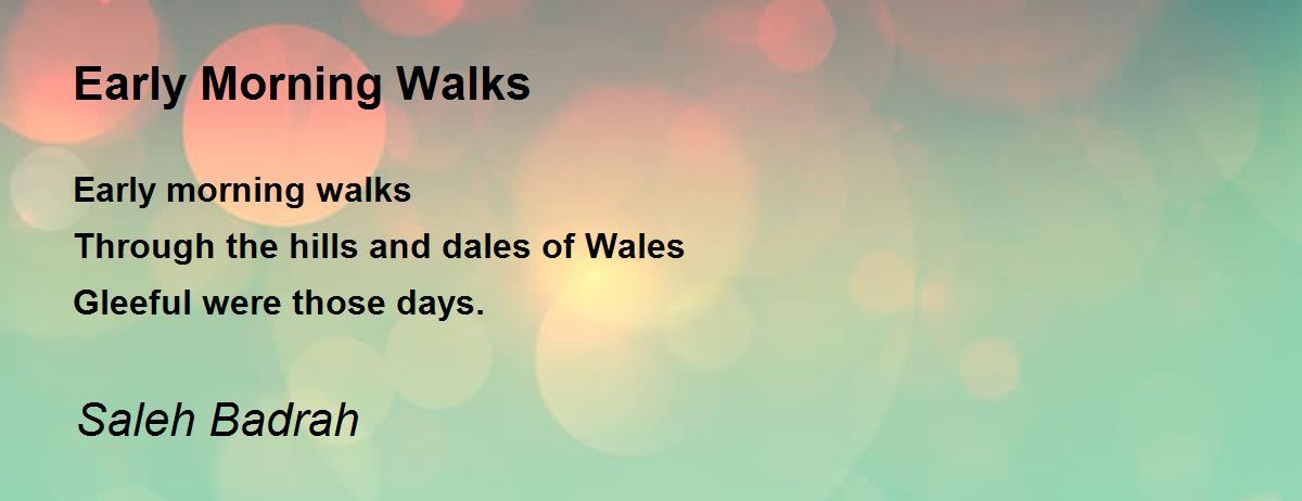 Early morning walks Through the hills and dales of Wales Gleeful were those days.