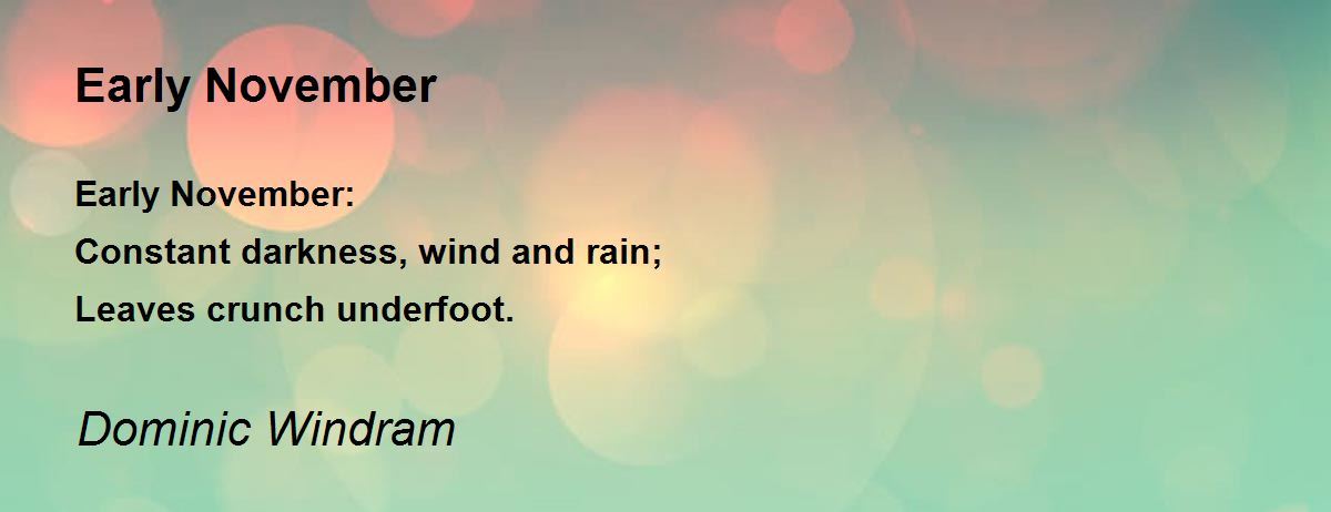Topic(s) of this poem: darkness,leaves,november,rain,wind