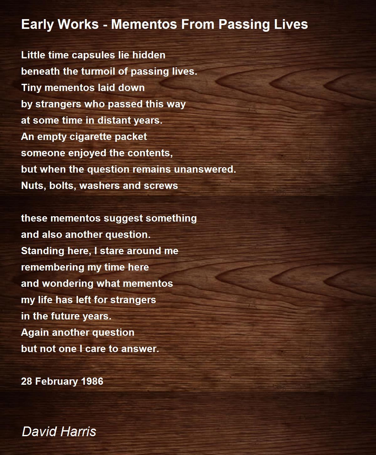 Intriguing questions in here. I often come across things in daily life and realize that someone has left me a 'time capsule' without ever realizing it; sometimes from decades ago. It gives me a strange feeling of the fleeting quality of everything in life..(smile)