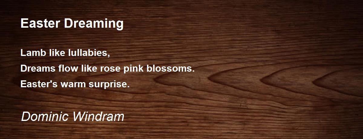 Lamb like lullabies, Dreams flow like rose pink blossoms. Easter's warm surprise.