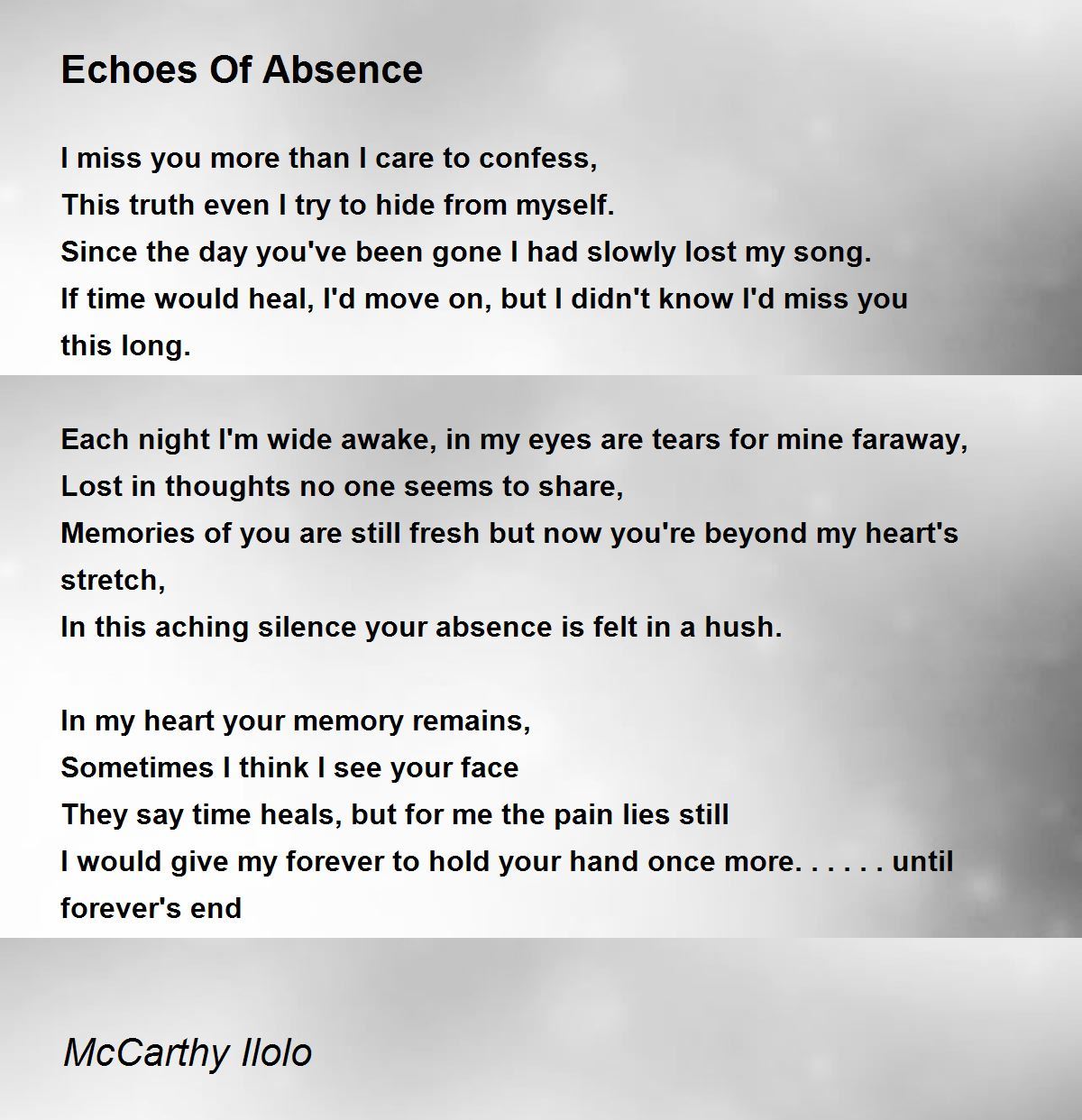 In this aching silence your absence is felt in a hush.