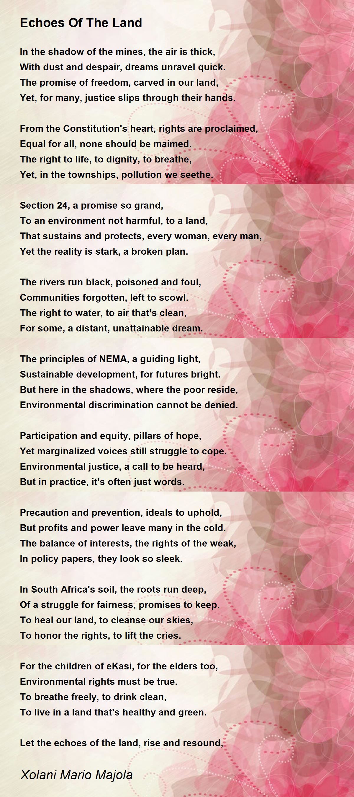 Yet, in the townships, pollution we seethe.