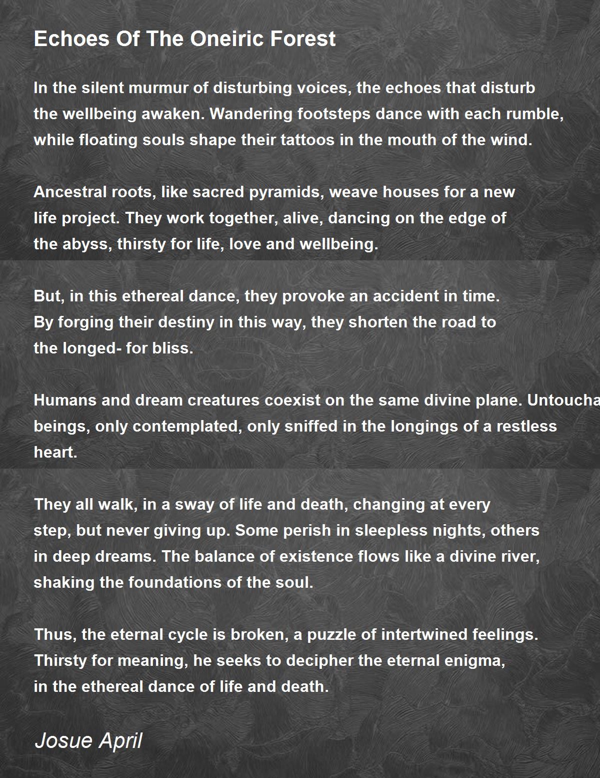 Thus, the eternal cycle is broken, a puzzle of intertwined feelings. Thirsty for meaning, he seeks to decipher the eternal enigma, in the ethereal dance of life and death.